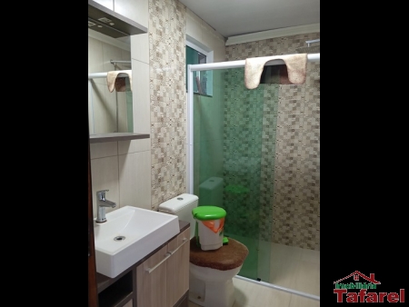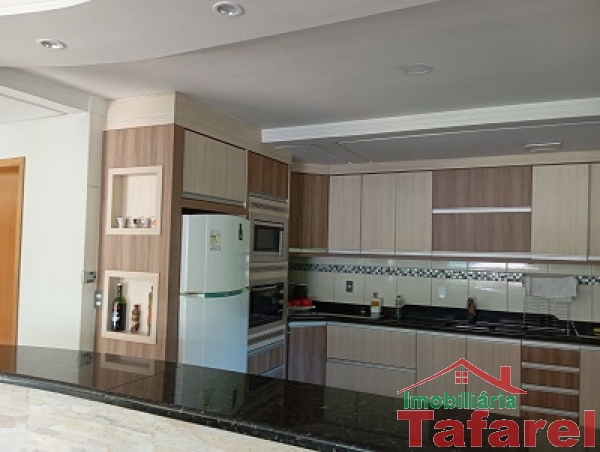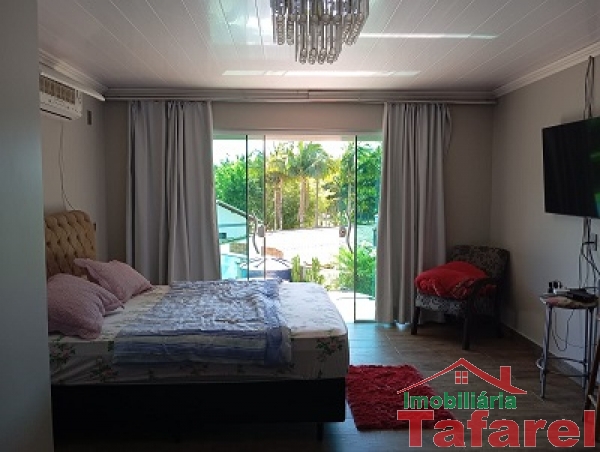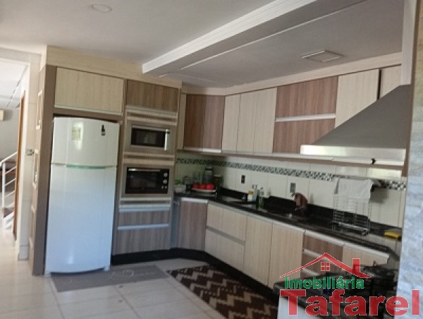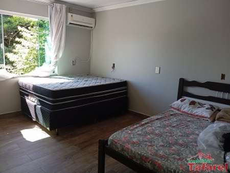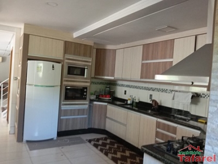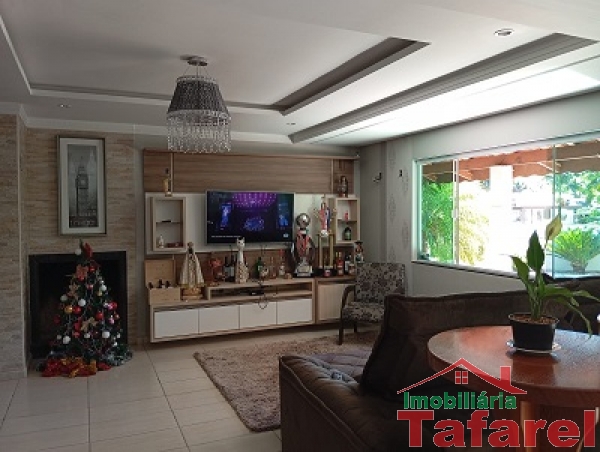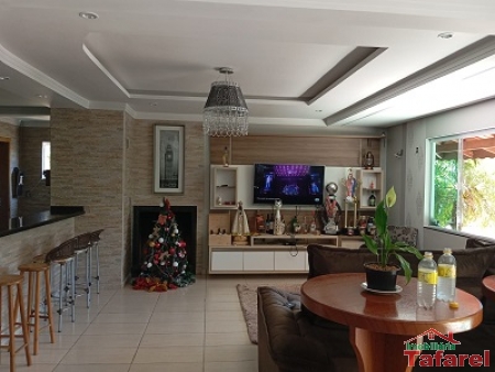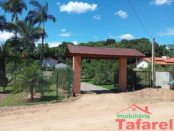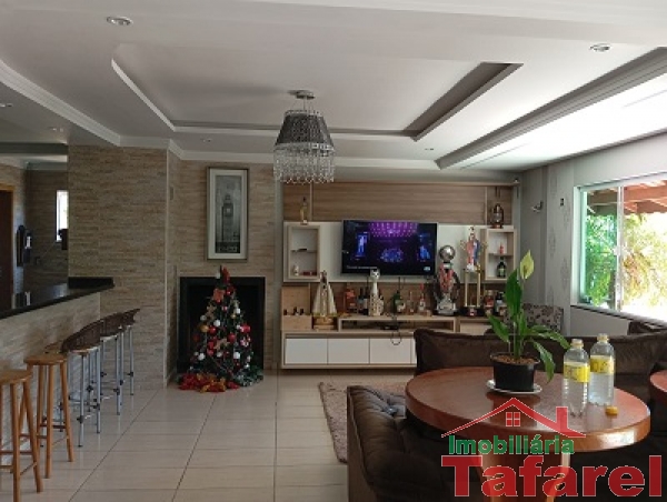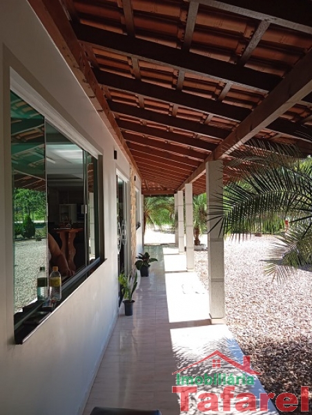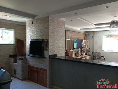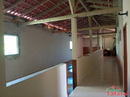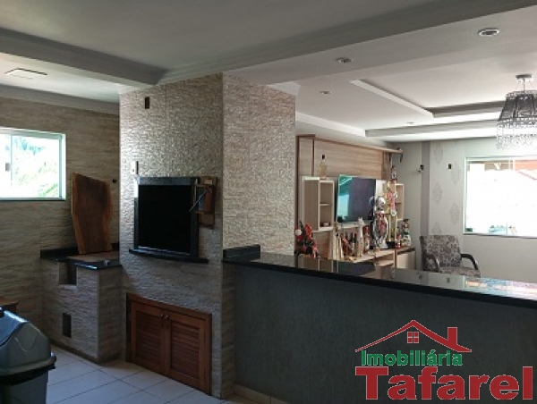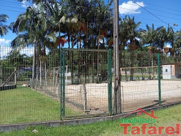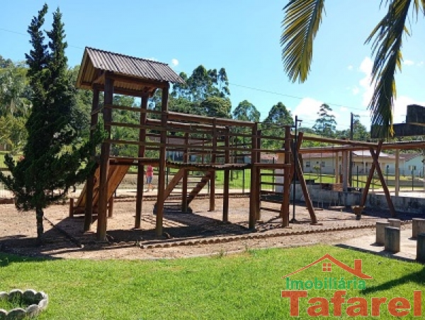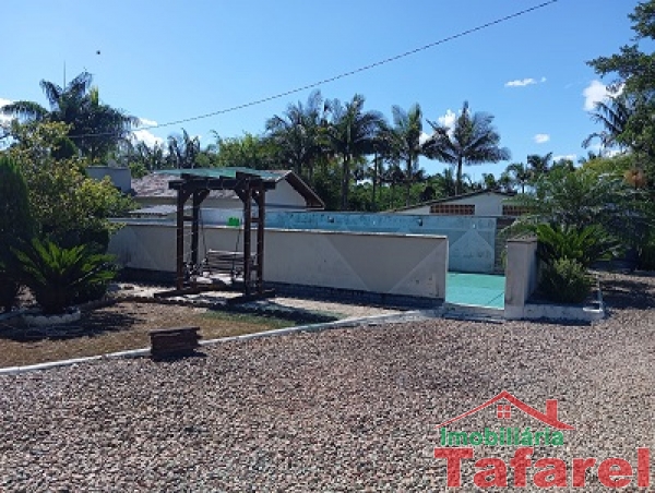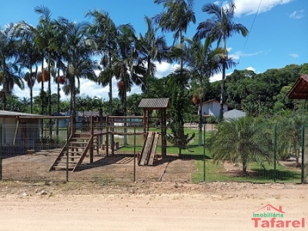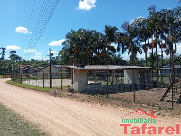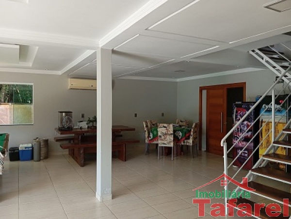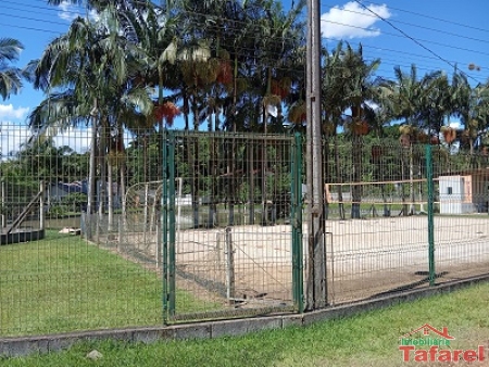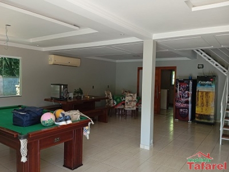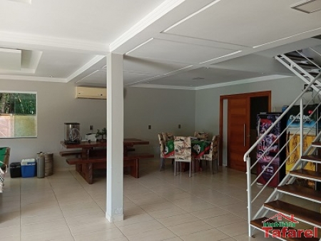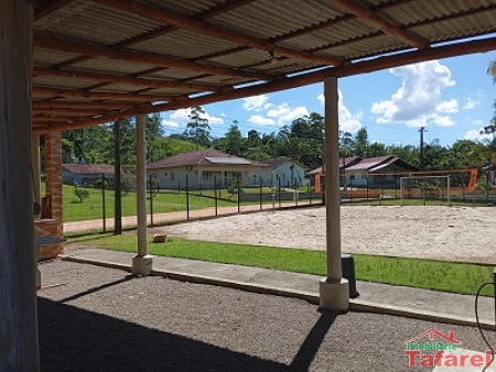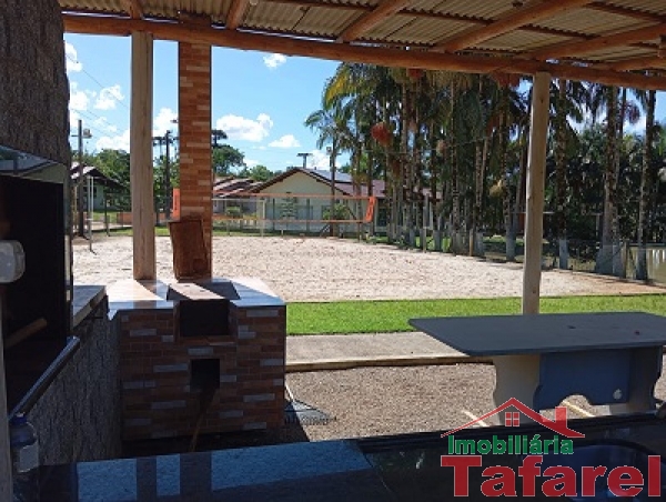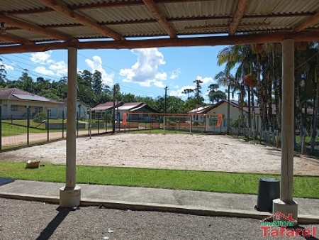 Com casa de alvenaria de 2 pavimentos com área de 360,00 m², possuindo embaixo: ampla área de festa, sala, cozinha sob medida, banheiro, dispensa e cancha de bocha.