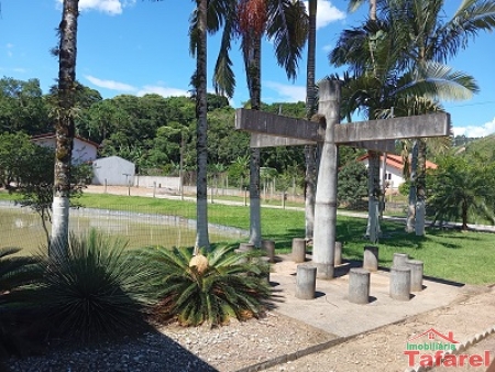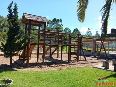 Lagoa, quadra de areia, playground, área com churrasqueira, fogão a lenha e banheiros e piscina.