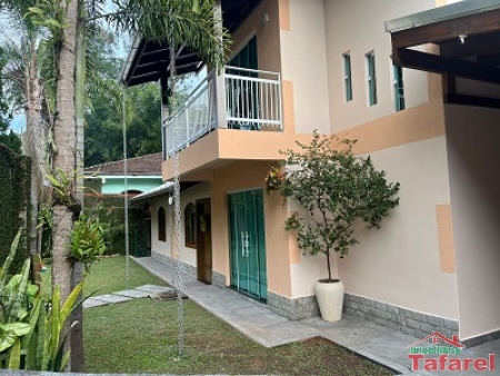 Casa em alvenaria com laje, distribuída em dois pavimentos, com 204 m² de área construída em um terreno de 567 m².