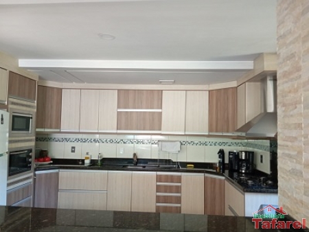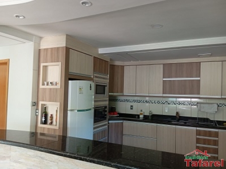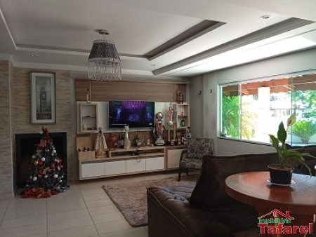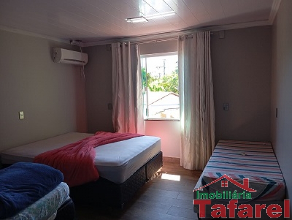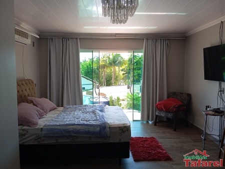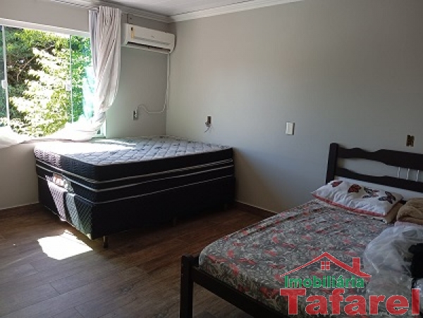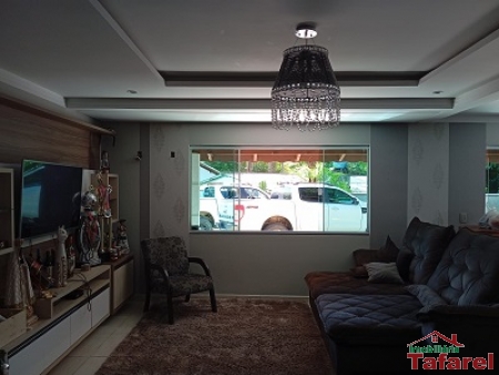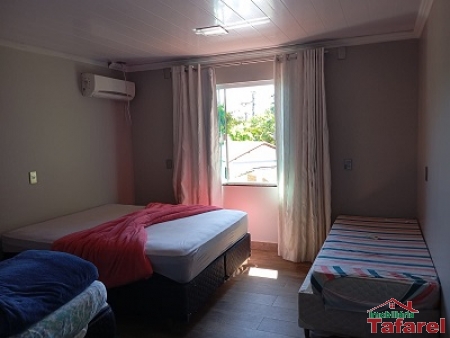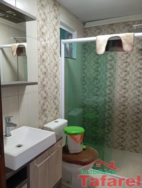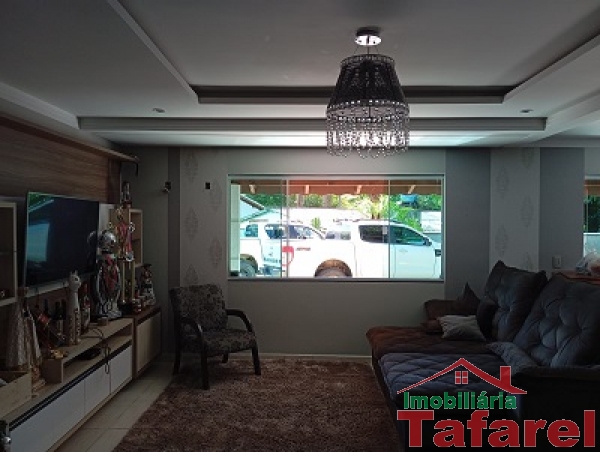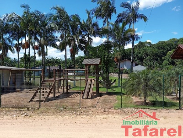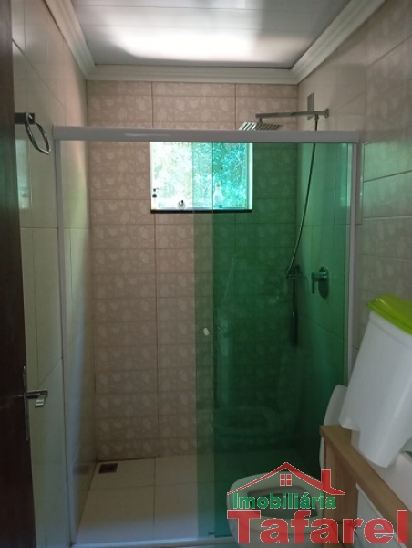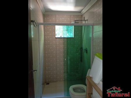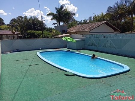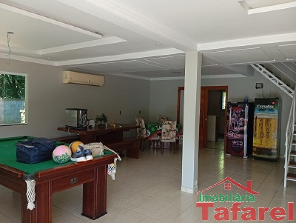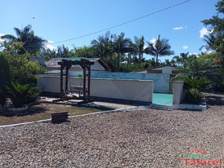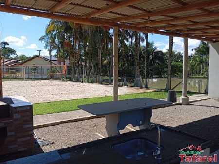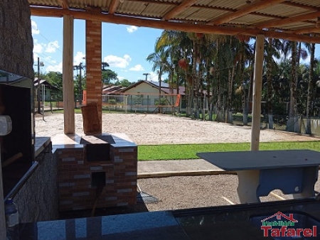 Com casa de alvenaria de 2 pavimentos com área de 360,00 m², possuindo embaixo: ampla área de festa, sala, cozinha sob medida, banheiro, dispensa e cancha de bocha.