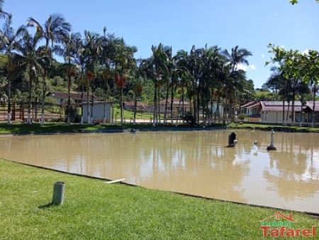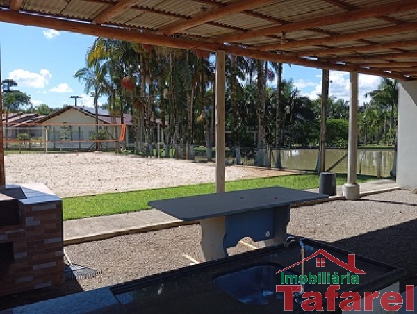 Lagoa, quadra de areia, playground, área com churrasqueira, fogão a lenha e banheiros e piscina.